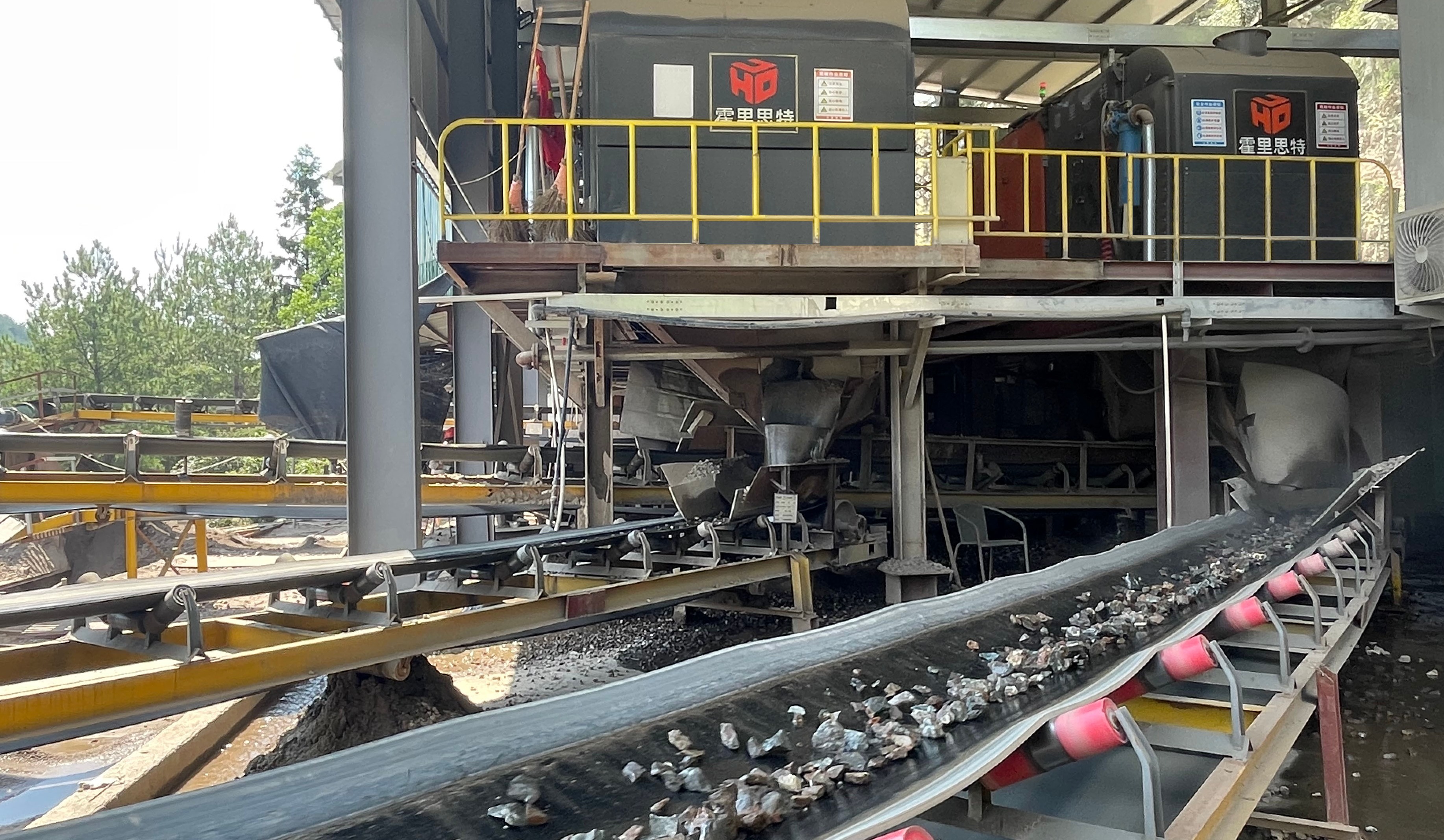 国内首例萤石矿光电智能分选,智能分选行业首例一分三工业应用落地--圣豪萤石矿主要矿石类型为石英-萤石型与萤石-石英型,选厂现有一套破碎、磨浮系统,破碎系统采用三段一闭路,处理能力1000t/d;原矿增设“K104一分三智能分选机”后,集精选+抛废于一体,可提前机选高品位粒子矿,直接增加企业收益,抛除原矿中的废石,减少入磨废石量,提高入磨矿石品位,降低选矿加工成本,增加选厂精矿产量,实现选厂扩能,间接提高矿山原矿生产能力.市场竞争力、企业声誉;抛出废石可对外出售,废石资源得到了最大化利用,符合国家绿色矿山发展方向。
